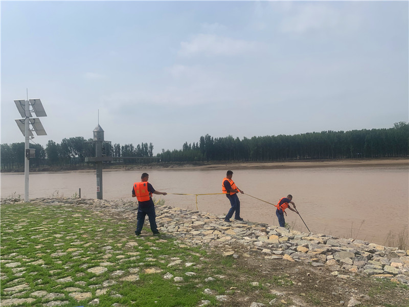 “别看我这么瘦,我可是又高又重,本事大着呢。”边说着,摸水杆边挺了挺胸脯,“大家都住黄河边,你们亲身感受过黄河水的温度吗?你们知道被滔滔黄河水拍打的滋味吗?最近黄河流量大,他们每天都至少2次使用我进行根石探摸,仔细检查是否有根石走失。有时候我都佩服他们勇气,离黄河水那么近,他们还能那么细致沉稳地进行探摸。”