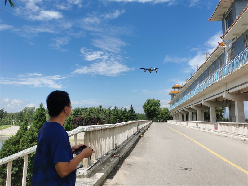 作为无人机操作手,他深知无人机在防汛工作中发挥的巨大作用——因大汶河上游持续来水,东平湖水位逐渐增高,人眼观测八里湾泄洪闸运行状况存在一定困难,无人机可悬停、可放大拍摄的功能为巡查工作带来充分助力。