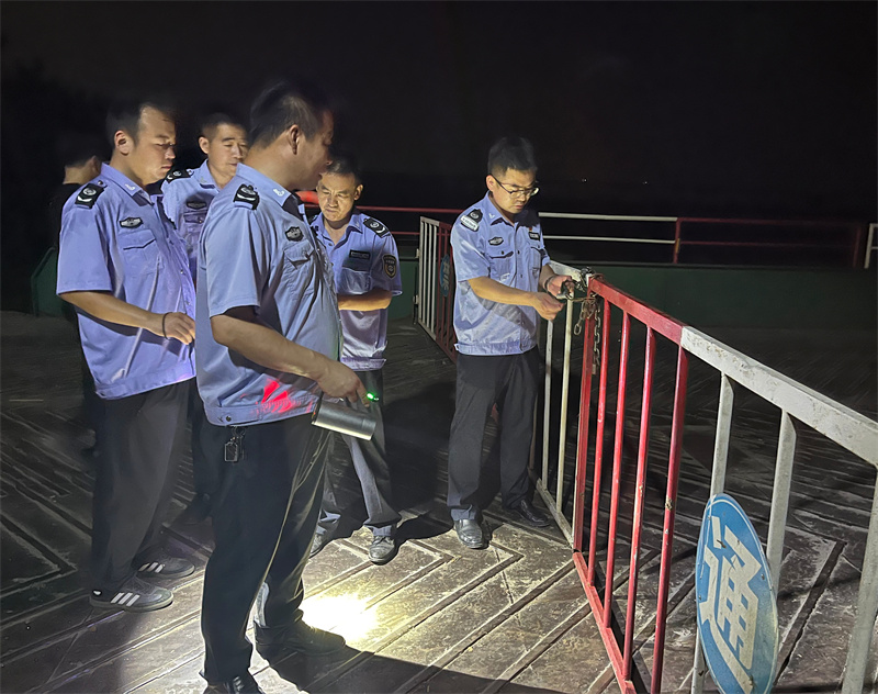 在检查完辖区四座浮桥之后,时间已到子夜,巡查人员均汗流浃背,面露疲惫之色,但无论是年长的王强、王鸿祥、刘延刚,还是年轻的孙程道平、李文韬,他们没有一人说一个累字,更没有一人提一个回字,因为他们深知此时此刻,在大河上下,不同岗位上,守护当“夏”母亲河的不只有他们,还有很多很多人……(田玉俭)