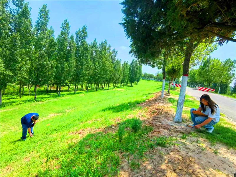 骤雨初歇热浪蒸,慧眼如炬辨微征。暴雨刚停,北金堤上还蒸腾着湿热暑气,古城段职工刘东亚和徒弟小尹已踏上大堤。小尹指向一处背坡,“水沟!目测直径1.5米,深约0.3米,宽0.2米。”刘东亚的目光如探照灯般扫过堤坡。他一边拉警戒线,一边指挥小尹具体测量,“居然跟目测地丝毫不差”,小尹投来崇拜的目光,“这种浪窝看着小,不及时处理,雨水再冲就能成豁口。”铁锹翻飞间,水沟被迅速回填夯实,师徒二人抹去汗水,马不停蹄又奔向下一处隐患点。