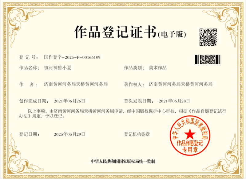 “小夏有‘身份证’啦!”6月23日,随着国家版权局《作品登记证书》的颁发,神兽小夏正式“持证上岗”。版权登记从法律层面确认了作品的原创性和专有权利,更意味着神兽“小夏”作为水利文化传播载体的价值获得版权认可。