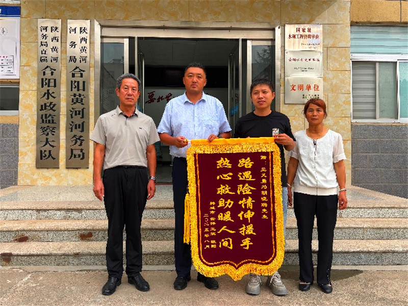 “感谢胡晓璐同志,救了我孩子一命!”由于救援当时,胡晓璐没有留下任何个人信息,受伤儿童的家属经过半个多月的多方寻访,才找到救援者,才将一面写有“路遇险情伸援手,热心救助暖人间”的锦旗交到了合阳黄河河务局胡晓璐手中,“大哥大姐,我只是做了一件应该做的事情。”胡晓璐的语言十分朴实,语气却十分坚定。“真是又震惊又佩服啊,胡晓璐救人的事情我们是今天看到来送锦旗的人才知道的,之前一点也没听他提起过,我们要向他学习这种奋不顾身的勇气和无私大爱的精神。”合阳黄河河务局职工说。