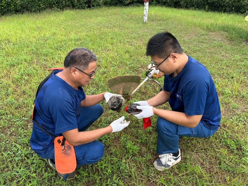 回到管理段,杨克球又带姜远收走进工器具房,搬出背负式打草机:“堤上草皮就靠它,不仅要会用,还得会修。”他揭开护罩,露出打草绳:“这是‘心脏’,每次用完都得检查。绳头磨得太细,下次准断,要及时换。”他演示穿绳步骤:“从孔穿入,绕转轮三圈,留十厘米绳头,太长易甩脱,太短启动就磨没。”姜远收试穿时缠反了方向,杨克球握着他的手慢慢调整:“顺着纹路走,你看,这样是不是顺了?”缠好绳,他又教检查机油:“机油保持在刻度线中间最佳,太少伤机器,太多易漏——跟自行车上油一样,要恰到好处。”姜远收手上沾了油污,杨克球递过纸巾:“干这行,手上不沾点油,不算真懂活。”