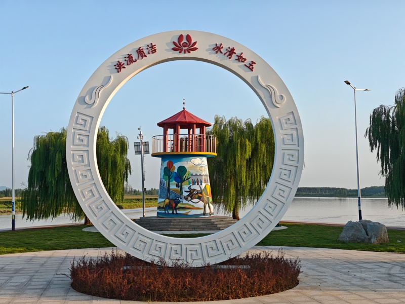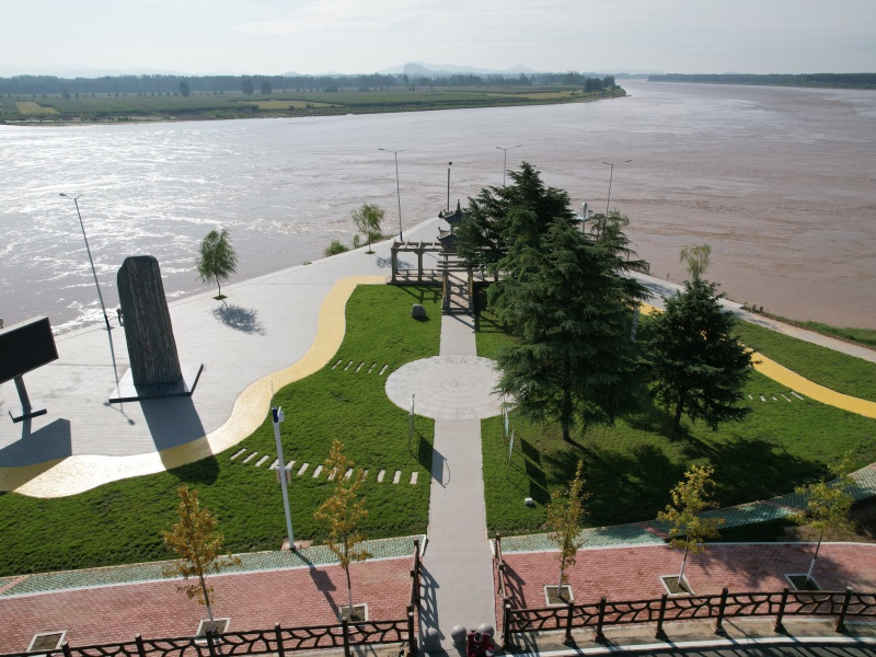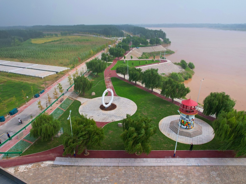 当然,陶城铺险工的新妆不仅于此,从空中俯瞰过去,这里还有记录着人民治黄历程的“九曲黄河路”“初心使命石”,有“96·8”抗洪主题雕塑和黄河保护法展板,还有清涟步道、步步生莲、黄河四季等景观小品……当各种色彩在蓝天白云下的阳谷黄河岸边同框流转,这处百年险工正以鲜活的姿态,让每一段故事、每一种精神,随黄河浪涛继续向下扎根、向前传递。(钟庄子 常绍鹏)