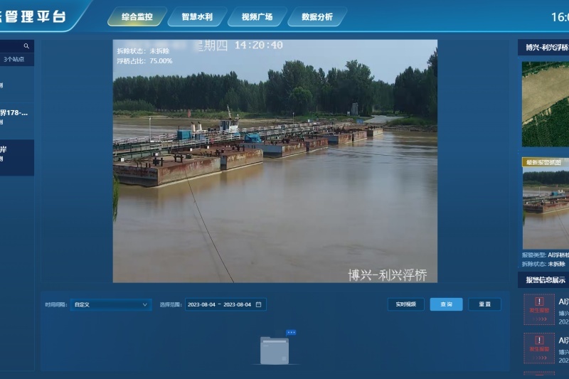 博兴黄河河务局以多技术协同赋能,为黄河工程安全筑起坚实防线。其中,智能算力为监控摄像头注入新动能,使其化身为 “全天候预警哨兵”,不仅能自动捕捉水位异常波动、精准识别非法垃圾倾倒行为、及时提示浮桥未按要求断开,还可辅助初步判断坝岸稳定性,一旦察觉风险便即刻触发警报,显著降低人工巡查负荷。