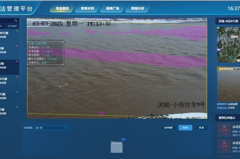 十年间,凌情监测完成从“人工+经验”到“天空地河”一体化的智能蜕变。无人机群每日巡飞,高清镜头捕捉冰情细节;视频监控24小时值守,AI算法自动识别冰坝前兆;智能浮标实时回传水温、气温、流速数据,系统自动生成风险预警——实现了“实时监测-智能分析-精准预警-快速处置”的闭环管理。