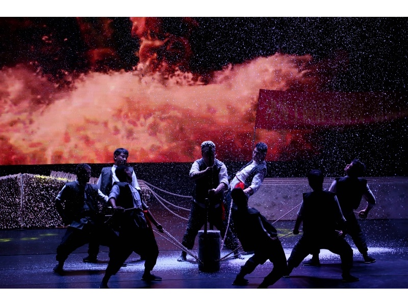 成立创作专班,层层压实责任,明确节点目标,推进剧本编写、演员遴选、舞台设计等环节,高效推进舞台剧落地。在《战洪图》中,观众仿佛重回1949年利津王庄险工于佐堂带领民众抗洪抢险现场,号子声、浪涛声与呐喊声交织,展现出治黄人誓保大堤的坚定信念。《铜锣声声》则再现了1951年王庄凌汛堵口的恢宏场景,老河工苏峻岭不顾劝阻,执意登上合龙占担任堵口指挥,愿以芦席裹身,誓与黄河共存亡,用血肉之躯守护家园安宁……