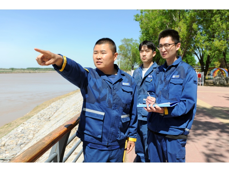 年轻职工认真聆听、踊跃实操,在问答间提升技能、传承信念。类似的场景,不断在惠民黄河一线重现:年轻同志时常围在王连民的身边,听他讲解机械的保养、工程巡查技巧;时常出现在滨州黄河防汛抢险基地,在赵然然的指导下,重复锻炼防汛抢险技巧运用,于点滴中接续使命。