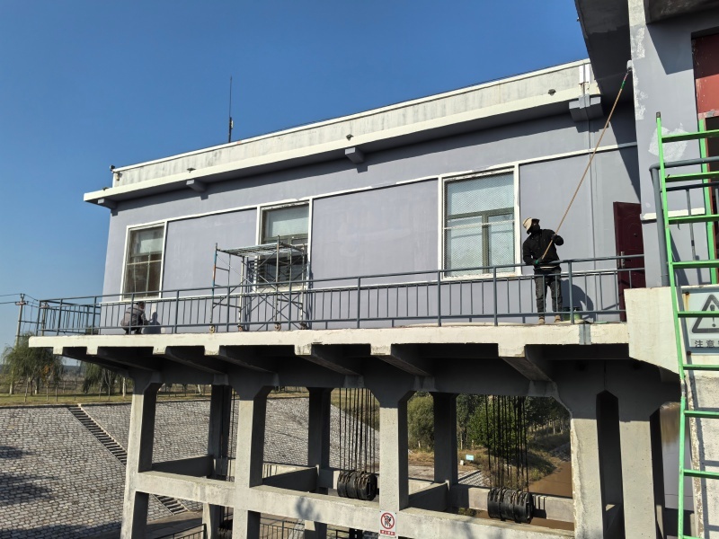 针对大孙排灌闸的闸室外墙,麻湾管理段的职工带领施工人员对其进行了刷墙翻新与屋顶防水作业。这一举措不仅有助于塑造整洁美观的工程形象,更能切实避免墙面因进一步脱落而引发的裂缝、屋顶因渗水而损害其中设备问题。施工期间,麻湾管理段职工全程在现场进行监督,反复向施工人员强调,工作时必须严格遵守施工规范,注意安全。进行脚手架作业时,至少要安排双人协同作业,并配备安全防护措施,以此确保工程质量与施工安全都能得到有效落实。与此同时,工作人员还对大孙排灌外的地面砖块进行了平整处理,将破损砖块进行翻新替换,进一步筑牢工程的“外在形象”。