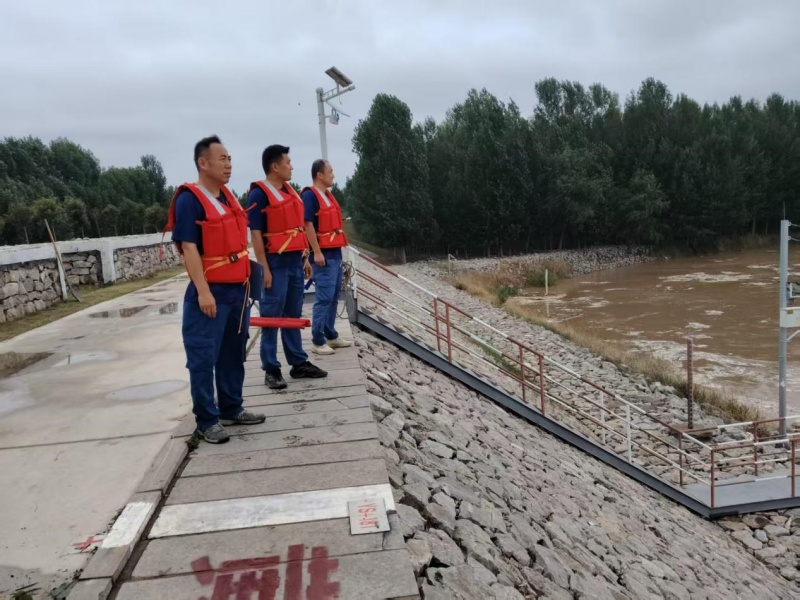 烈日下,巡查人员许浩等三人拿着探摸杆等工具走在沿子石上,汗水浸透的工作服紧紧贴在他们的身上;暴雨中,观测员张继辉撑着伞蹲在水位尺旁,雨水顺着脸颊流进衣领也顾不上擦。