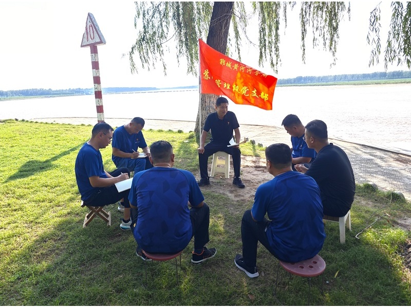 在苏阁险工,苏阁管理段党支部党员围坐一起,开设了一场别开生面的“坝头课堂”。支部书记陈勇结合工程巡查要点,现场讲授微党课,老党员则指着身后的坝岸,讲解工程养护与险情研判要领……这正是“党建+”模式在基层落地生根的生动实践。