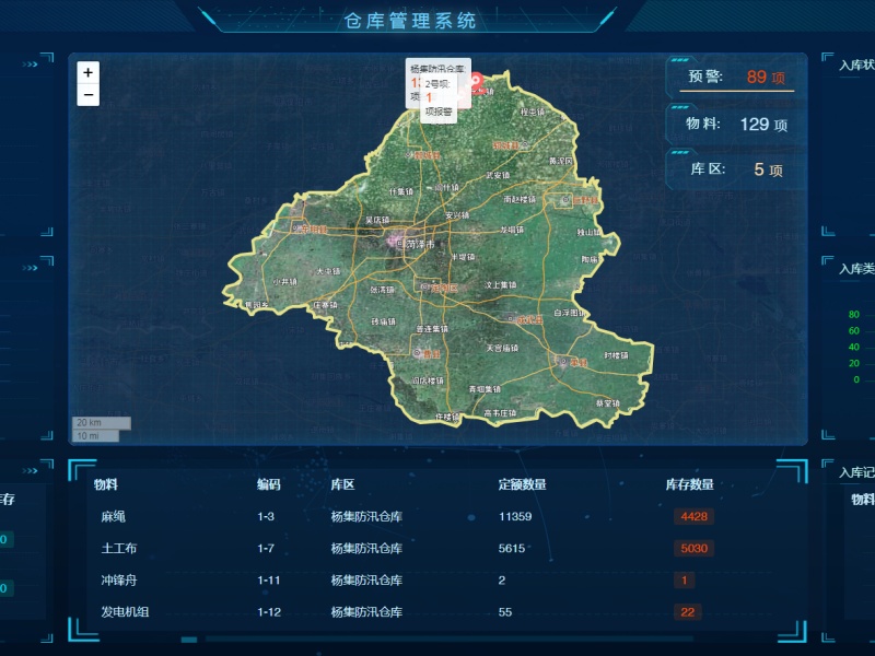 针对传统防汛物资管理“底数不清、调配缓慢、损耗难控”的痛点,“防汛仓库智慧化管理系统”应运而生。该系统依托RFID、MySQL数据库等技术,实现物资入库、出库、调拨全流程数字化追溯,同时具备库存智能预警、需求自动测算、就近调配推荐等功能。2023 年一次突发险情中,系统通过实时数据分析自动匹配最近物资储备点,将原本需要2小时的物资调配时间压缩至15分钟,成功为险情处置赢得黄金窗口。此外,结合郓城黄河滩区地形复杂、漫滩风险高的实际情况,该局在关键断面、险工险段精准布设自动监测与漫滩预警装置,实现滩唇出水高度、河势变化等核心数据的远程实时采集与自动分析,既大幅减轻了一线人员的劳动强度,又有效规避了人为观测误差,让防汛决策更具科学性、针对性和时效性。