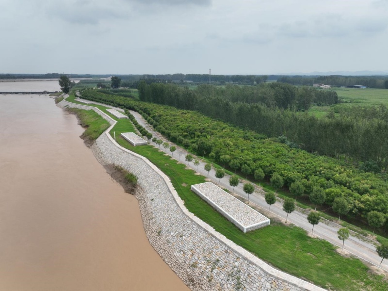 “十四五”期间,该局完成娘娘店控导续建工程,建设工程长度250米,配套修建文化设施广场与排水管涵,管涵的实施使娘娘店控导工程从此首尾相连,浑然一体,长虹卧波,天堑变通途;完成大西环、郑济高铁涉河项目建设,实施8处控导工程补救措施并同步开展工程基础提升。五年来,通过防汛项目整修工程10.5千米,坦石粗排5万余平方米,整修沿子石12千米,清理工程边界、整修边梗并安装隔离网5千米,硬化连坝道路13.7千米,全面提升了防洪工程整体抗洪强度,让工程面貌焕然一新,为黄河安澜筑牢了硬件基础。