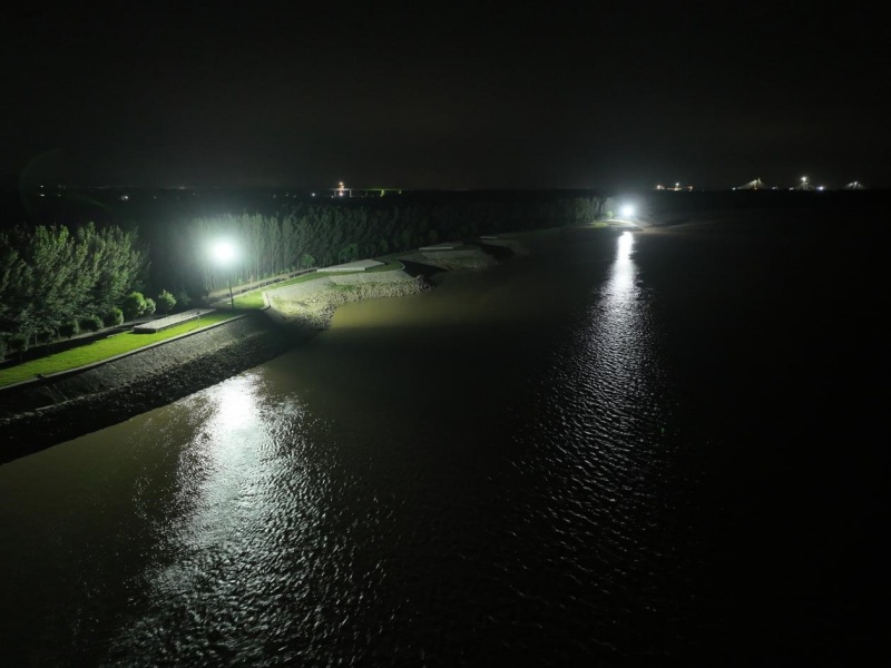 同步实施亮化提升工程,增设7处1公里级氙气探照灯、43处LED高亮塔吊灯,在15处控导工程接入37处市电电源点,打造50处多功能照明点位,全面满足夜间工程巡查、河势观测、防汛查险、抢险救灾等多元化需求,为全天候管护提供坚实保障。