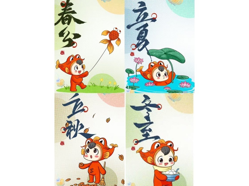 这组海报,不只是节气提示,更是一次次与母亲河的深度对话。每一帧画面,都巧妙融入了长清段黄河的时令景色、水文特征和相关民俗典故。这让“长小鲤”的形象更加丰满、有根脉,它不仅是吉祥物,更是黄河四季风光和治水智慧的体验者、传播者,让群众在四季轮回中,感受着母亲河脉搏的每一次跳动。