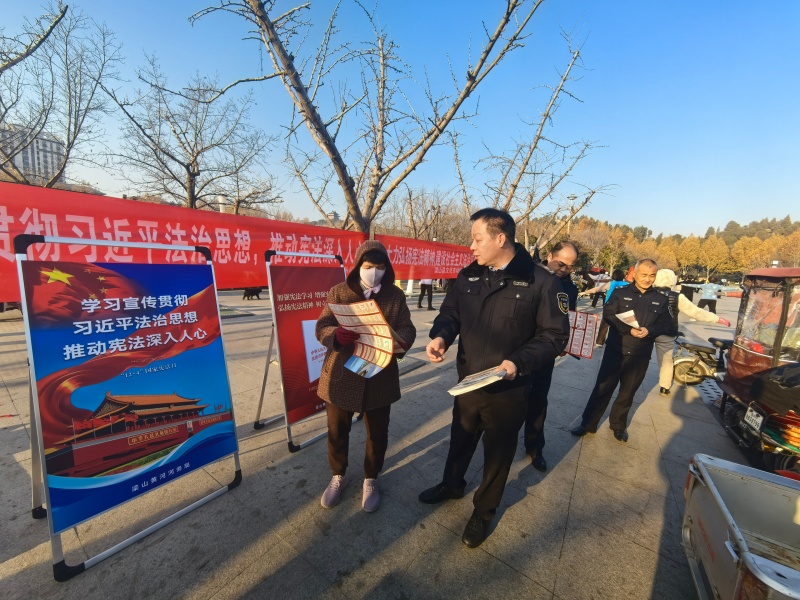 12月4日,国家宪法日当天,梁山县凤山公园人头攒动、气氛热烈。按照驻地政府统一安排,梁山黄河河务局与县司法局、水利局、公安局等二十多家单位,共同举办集中宣传活动。