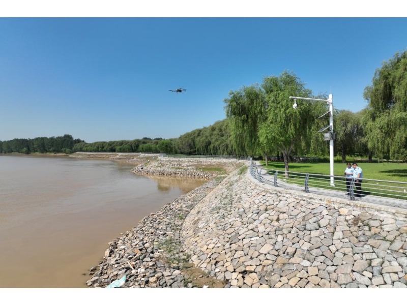 无人机巡河是智慧治理的“硬核利器”。以往人工巡河,工作人员驾车或步行,一天最多巡查20公里,还存在堤坡背阴处、河道深处等视觉盲区;如今无人机腾空而起,单次巡查范围可达20余公里,高清镜头能清晰捕捉河道内的垃圾堆积、违章建筑苗头,甚至滩区的人员活动轨迹,发现问题后实时传回指挥中心,处置效率较以往提升5倍不止。