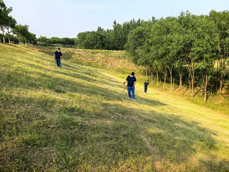 标准作业提形象,精细管理见实效。该段聚焦工程日常管护,紧盯杂草快速生长期和旺盛繁殖期,分类采取人工拔除与药物防治相结合的方式清除,保证草皮覆盖率与防冲能力;以草皮修剪为抓手,采用“机械为主、人工为辅”模式,统筹推进大面积修剪与边角区域精细整治,严格把控草茬留存高度,用“绣花功夫”为防洪工程“强筋健骨”。