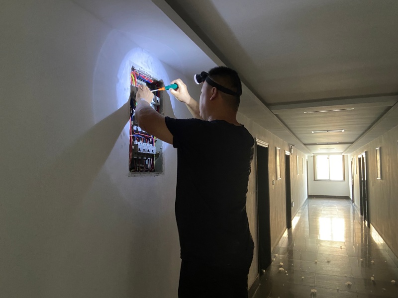 在用电安全领域,该局针对后勤领域点多线长、用电设备分散、故障排除难度大等问题,聘请专业电工实施“定期巡检”。专业电工每月对全局办公区、宿舍区、厨房及防汛仓库等重点场所的电气设备、电线电路开展全面检查,重点排查线路老化、漏电保护装置失效、私拉乱接电线等安全隐患,建立电路安全巡检台账,对发现的问题及时闭环整改。
