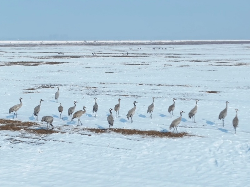 新春的黄河滩区银装素裹,成群灰鹤、豆雁在浅滩觅食,国家一级保护动物白鹳、黑鹳的身影不时掠过芦苇荡。为守护好这些“越冬贵客”,值班人员化身生态卫士,在候鸟栖息地周边设置文明观鸟标识,加大巡查频次,杜绝惊扰行为。