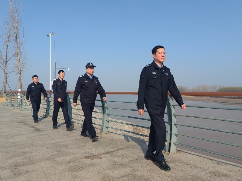 本站2月27日讯 春染黄河岸,风暖草木新。在高青黄河岸边,一支由水政监察人员和公安民警组成的联合执法队伍正沿着堤防稳步巡查,他们的身影与蜿蜒的河道、生机盎然的堤岸构成了一幅守护母亲河的生动图景。