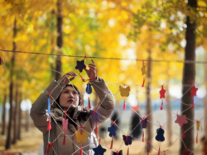 “在银杏林角落布置个挂心愿牌的网吧,拍照简直少女心爆棚!”于是金秋的银杏叶下多了一处定格浪漫的地方。