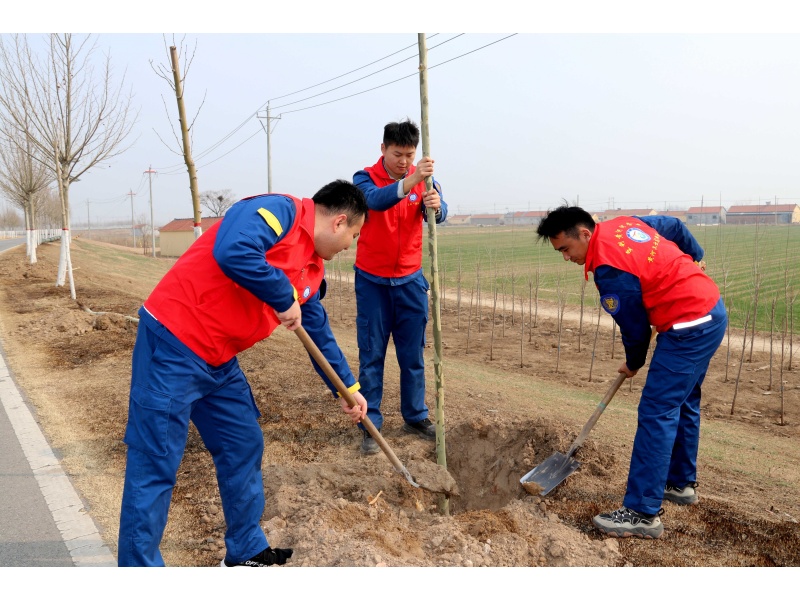 随着无人机望向远方:在辖区胜利段,段所职工正与施工队伍对堤防沿线和淤区植树点位进行统一规划、精准放线、规范开挖;在义和段,补植挖坑的同时,职工同步扩大树穴,对预备树苗进行浇水养护;在路庄段,职工结合辖区立地条件,科学施用生根剂,促进根系萌发与养分吸收,提升苗木抗逆能力;在护林段,一抹抹志愿红忙碌在现场,从挖坑扶苗到培土浇水,每一道工序都精益求精、一丝不苟。他们,都在为建设一条绿色的河、生态的河长久奋斗,种在春天、护在四季;植在眼前、守在长远!