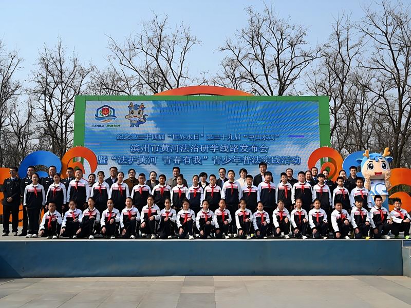 千百年后,黄河依旧奔腾不息,一场与先贤跨越时空的同频共振正在悄然上演。在第32届“世界水日”、第37届“中国水周”到来之际,由滨州黄河河务局联合团滨州市委、市司法局主办,团博兴县委、县司法局、博兴黄河河务局承办,滨州市黄河法治研学线路发布会暨“法护黄河 青春有我”青少年普法实践活动于打渔张森林公园启幕。市县有关领导,以及少先队员、青年志愿者共计100余人参加活动。