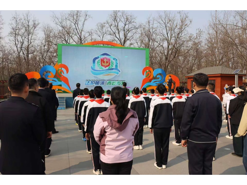 青年代表登台发声,彰显滨州青年守护母亲河的坚定决心;市县领导相继讲话,为青少年普法实践指明方向;最终,在场人员共同见证滨州市黄河法治研学路线启动。这一刻,品牌logo成为画卷的题头,每个人说出的誓言化作流淌在画卷上的韵律……法治的“线条”随着春风而起,勾勒出黄河保护最坚实的轮廓。