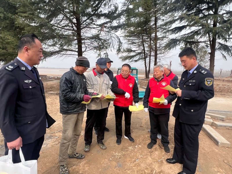 杨集险工前的宣传点,水政执法人员与老同志们一同开展普法宣传。退休职工赵善允结合几十年治黄经历,向围拢过来的村民讲述黄河治理变迁和节水护河的重要意义。他指着身后的险工,用最朴实的乡音讲解黄河保护法中与百姓生活息息相关的规定,将抽象的法律条文转化为群众听得懂、记得住的大白话。