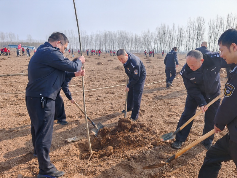 在指定造林片区,水政执法人员与公安干警们挥舞铁锹、扶正树苗、培土夯实、提桶浇水,现场一派热火朝天的景象。大家分工协作、配合默契,一株株承载着希望的新苗迎风挺立,为母亲河披上了一层崭新的绿装。