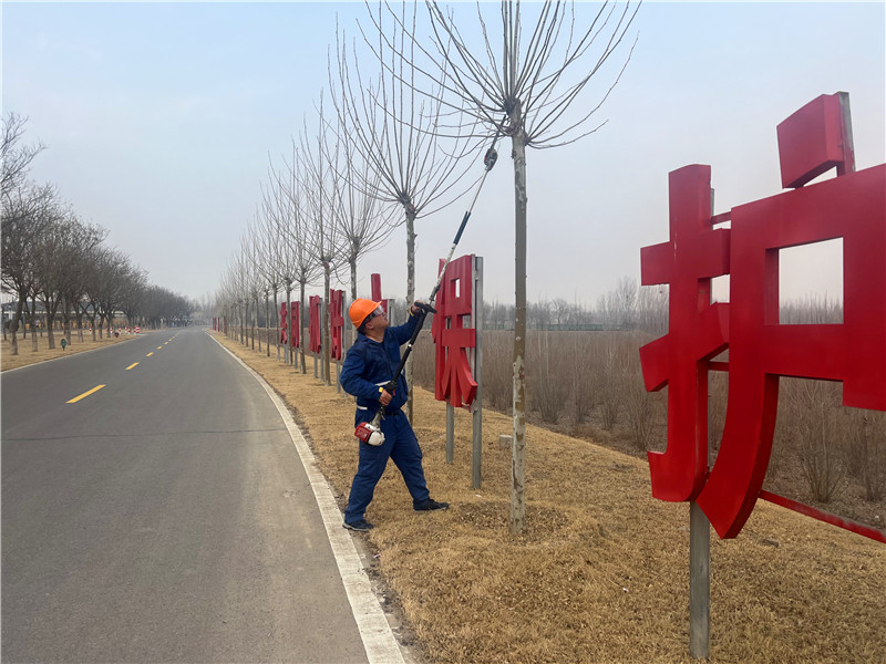 本站3月13日讯 近日,为优化工程面貌,提高和完善堤防、险工绿化景观效果,曹店管理段抓住良好时机,集中开展行道林修剪树枝工作,提升道路绿化美化水平。