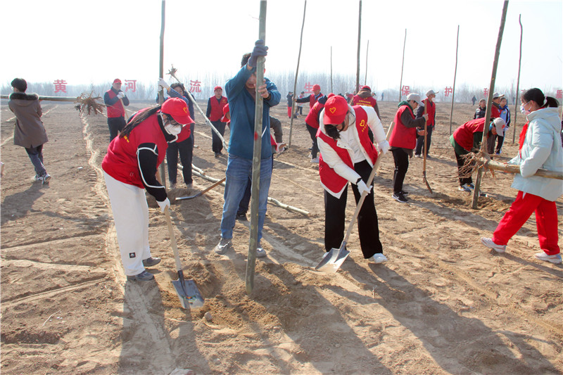 活动现场,东营区党政领导、东营黄河河务局志愿服务队以及社会各界志愿者合作分工,井然有序开展植树工作,共同运苗铲土、扶苗挥锨、填坑培土,埋头苦干,用双手播种希望,为黄河大堤添上一抹新绿。新栽培的小树苗筑起一道道生态屏障,在和煦的春风中呈现勃勃生机,奏响了黄河大堤绿色的主旋律。