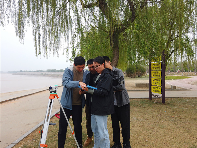 风清草绿,最美人间四月天。这是4月10日在历城黄河河务局组织的水尺校测实操培训“河边课堂”上,测量能手丛葳讲解如何利用水准测量仪对水尺零点高程及水准基点进行测量校测时的场景。