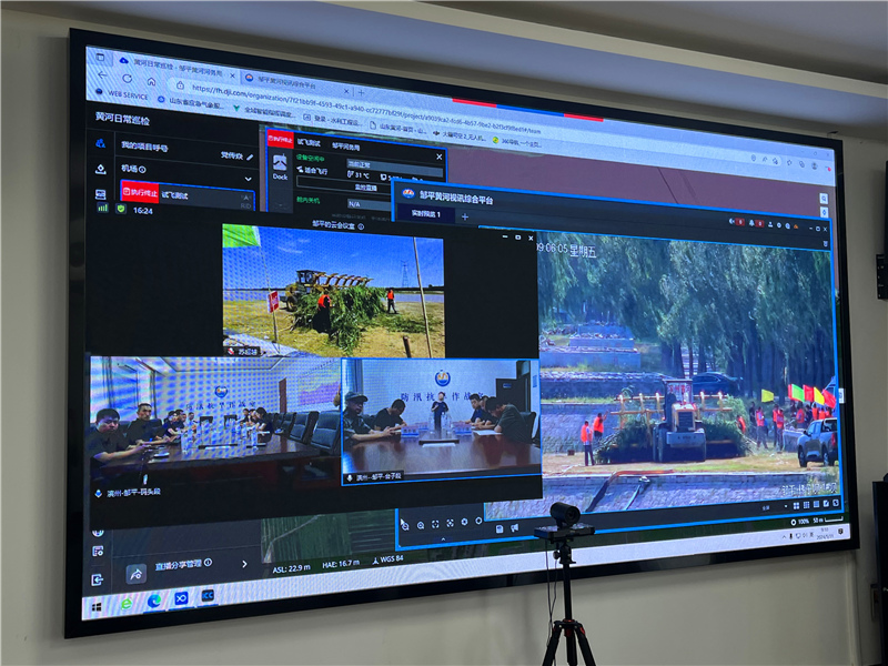 本次演练依托“三个全覆盖”系统,防汛指挥室设在码头管理段,分会场设在台子管理段,通过视频监控、无人机、视频会议实施传输画面模拟“2021年黄河秋汛洪水”过程,设定黄河邹平段将逐步出现3000~5000立方米每秒量级洪水。险情发生后,邹平黄河河务局立即下达调令,调动各镇街抢险队员。针对险情,采用机械捆抛柳石枕、拆除浮桥、修筑反滤围井、抢筑子堤等方式抢护。