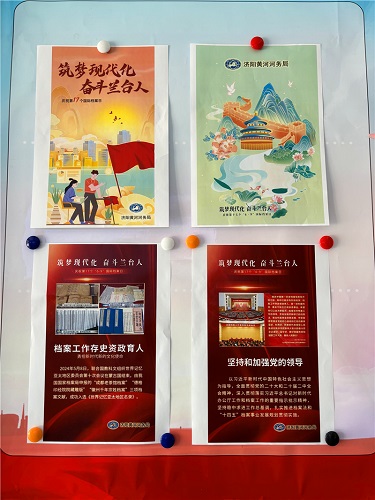 该局通过开展2024年度档案宣传专题培训,张贴档案宣传海报,摆放宣传展板,在单位LED大屏播放档案宣传视频等方式,多方位宣传讲解档案法及档案管理相关知识。同时,为了增加职工切身参与感和积极性,该局举办“档案开放日”邀请全局职工参观档案库房、单位荣誉室,并由该局专职档案员现场生动讲述新时代济阳黄河档案故事和光荣历史,讲解档案存放和利用的具体流程,