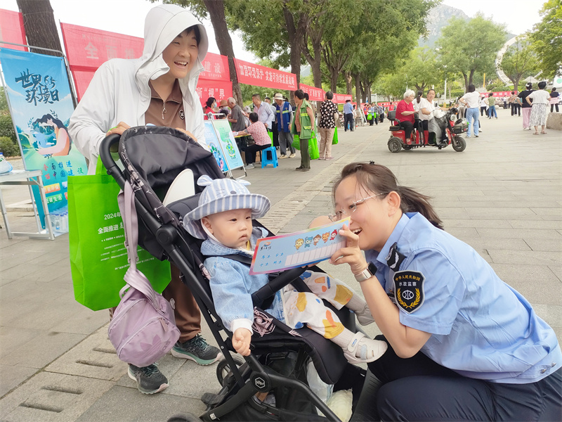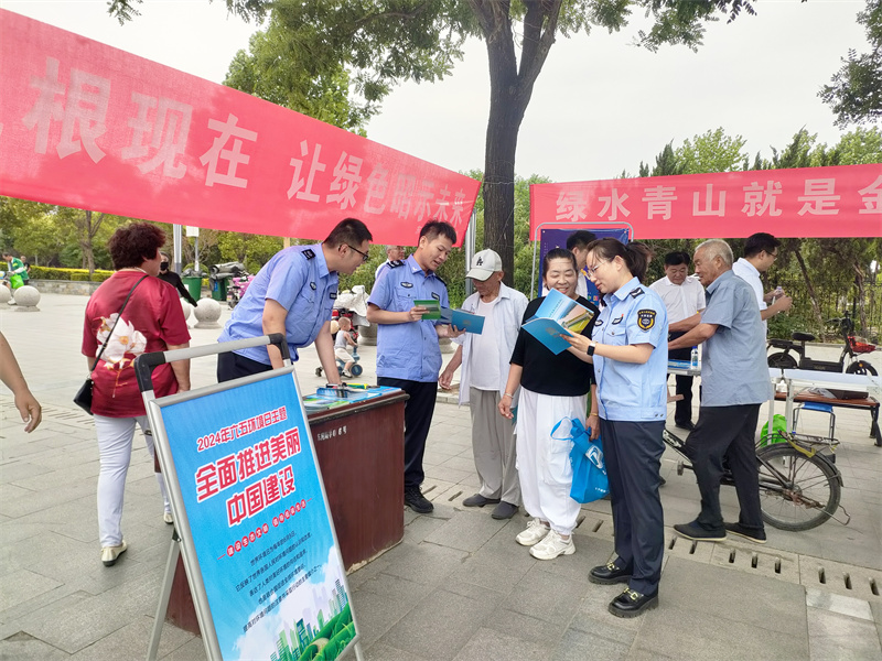 该局选择人员集中的广场作为宣传点,紧紧围绕“全面推进美丽中国建设”宣传主题,通过悬挂横幅、摆设展板、发放多样宣传手册及环保倡议书的形式做好宣传。同时,该局工作人员结合治黄中心任务,重点向群众介绍与黄河生态环境保护相关的法律法规内容,详细讲解依法保护母亲河的具体举措和重要意义,引导大家提升爱河护河意识和保护生态环境的自觉性。