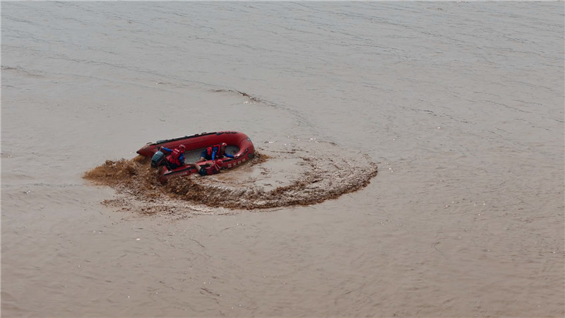 闭营仪式前,与会人员观摩了应急救援装备展。无人机救援系统、照明装备、防汛专用器材、创伤急救包等专业化设备集中亮相,涵盖破拆、通讯、抢险等多类“硬核”装备。与会人员通过近距离观察和实操体验,深刻感受现代应急救援的科技化与专业化水平。在黄河抢险演训基地,一场多场景应急救援模拟演练震撼上演。埽面上,东阿黄河“河润胶乡”志愿服务队现场演示了传统黄河埽工技艺——拴打家伙桩的操作流程。河水中,橡皮艇疾驰,运用离心救援技术救起“落水者”;翻舟险情中,队员默契配合完成舟艇复位与故障船拖带。天空上,无人机精准执行物资抛投和伤员转运任务……这场水陆空联动的演练,充分展现了青年志愿者守护黄河安澜的过硬本领与使命担当。
