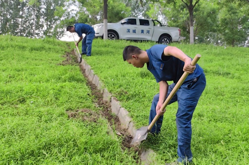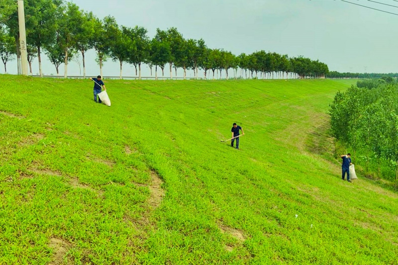 该段坚持“日常养护与季节整治相结合、问题整改与源头防控并重”的原则,针对日常巡查发现的各类问题,依据班坝责任制逐段落实责任,迅速组织人员开展高标准清理整治,确保问题闭环处理;加强堤顶道路、堤肩边坡及排水沟等部位的日常保洁与维护,定期清除杂草、垃圾杂物,保障工程整体面貌干净整齐;加大对近堤村庄密集区等重点堤段的巡查频次,对工程范围内倾倒垃圾、违章种植等行为及时劝阻制止,并同步上报水政执法部门依法处理,维护工程管理秩序;联合属地社区深入沿黄村庄,广泛宣传相关法律法规,增强群众法治意识和护堤自觉,从源头上遏制违法违规行为,营造共管共护的良好氛围。