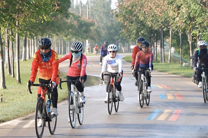 本次骑行路线全程约93.4公里,涵盖生态林场、艾山卡口、法治文化广场、郭口引黄闸等黄河景观。活动伊始,发令枪响,浩荡的骑行队伍宛如一道流动的彩虹,穿梭于如诗如画的黄河岸畔。参与者们个个精神饱满、斗志昂扬,一边奋力前行,一边领略着母亲河的磅礴气势与沿岸的金秋美景,成为黄河岸边一道充满生机与活力的动人风景。途中,骑手们彼此加油鼓劲,互相关照,欢声笑语与车轮飞驰声交织,共同汇成一曲对健康生活与运动热情的热情礼赞。