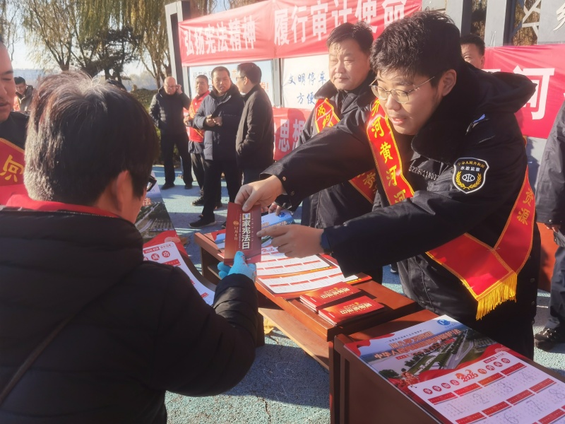 本站12月5日讯 为迎接第十二个国家宪法日的到来,维护宪法权威,12月3日,齐河黄河河务局联合齐河县政法委、公安局等30余家单位,在齐河县沁湖公园广场共同开展主题宣传活动。