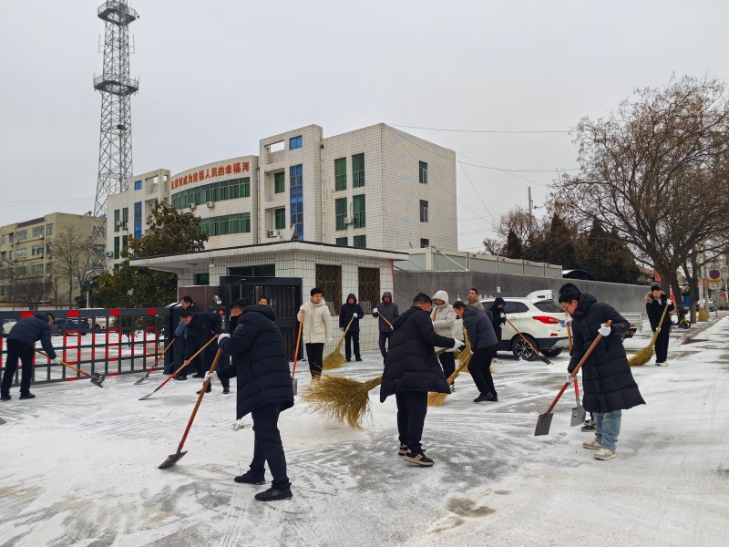 本站1月20日讯 1月19日,受冷空气影响,迎来今年冬季第一场强降雪天气。为保障职工出行安全,郓城黄河河务局迅速行动,第一时间组织干部职工开展扫雪除冰活动。
