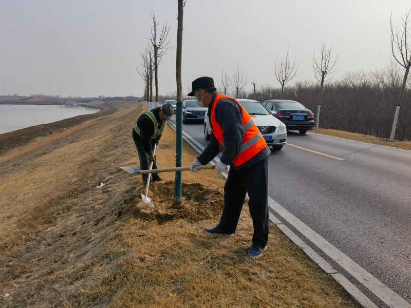 备植工作中,义和管理段聚焦土地整理夯实栽植基础,对黄河淤背区、滩区等重点区域开展精细化土地整理,集中清理杂草、残根、杂物,对土地进行深耕整平、规范划垄,严格达到栽植标准要求。紧盯行道林补植筑牢生态防线,对临黄堤堤顶行道林进行全面查勘、精准排查,规范有序开展补植挖坑,同步扩大树窝、对预备树苗进行浇水养护,全力提升苗木成活率。通过科学谋划、系统整治、协同推进,既为辖区春季植树创造了优良条件,也有效提升了黄河工程整体面貌。