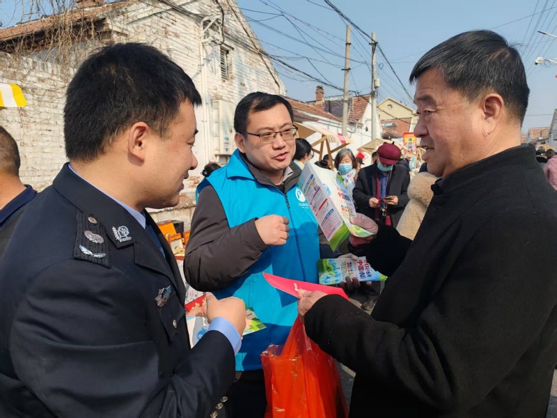 本站3月24日讯 3月20日,惠民黄河河务局组织青年职工走进皂户李镇火把李村,依托当地黄河文化工艺汇,感悟黄河传统民俗文化,并面向群众普及黄河保护法、水法及节水知识,将法治课堂搬进民俗集市。