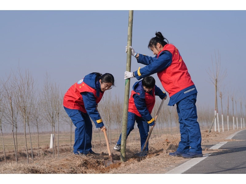 活动以“且趁春风播新绿,同绘河地融合图”为主题,旨在抢抓春季绿化黄金期,消除工程绿化空白断带,同时深化黄河业务部门与地方社区的联动共建。植树现场,志愿者们分工协作、默契配合——挥锹铲土、扶苗填坑、提水浇灌、踩实固根,每一道工序都一丝不苟。经过一上午的辛勤劳作,200余株国槐树苗在义和险工沿线“安家落户”,与滔滔黄河水交相辉映,为春日河畔增添勃勃生机。