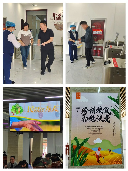 节能办制作了世界粮食日展板,在一楼大屏循环播放世界粮食日主题宣传片;在职工食堂张贴主题海报,向就餐人员发放倡议书,播放节约粮食宣传片,让厉行节约、杜绝餐饮浪费的意识入脑入心;组织机关部门及驻楼单位人员及食堂管理人员共同观看了“坚决制止餐饮浪费 党政机关走在前列”全国节约粮食宣传进机关活动直播,宣介机关食堂反食品浪费工作进展成效,普及有关法律法规、制度标准,重点推动机关食堂反食品浪费工作成效评估和通报制度落地实施。