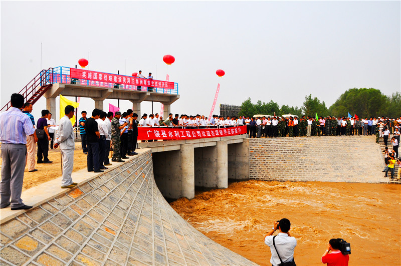 2010年6月24日,崔家节制闸开闸放水,刁口河恢复过流试验成功启动。(张立传 摄)