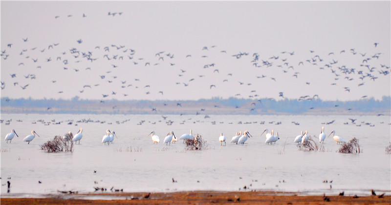 2014年10月,连续多年生态补水后,万鸟翔集刁口河(张立传 摄)