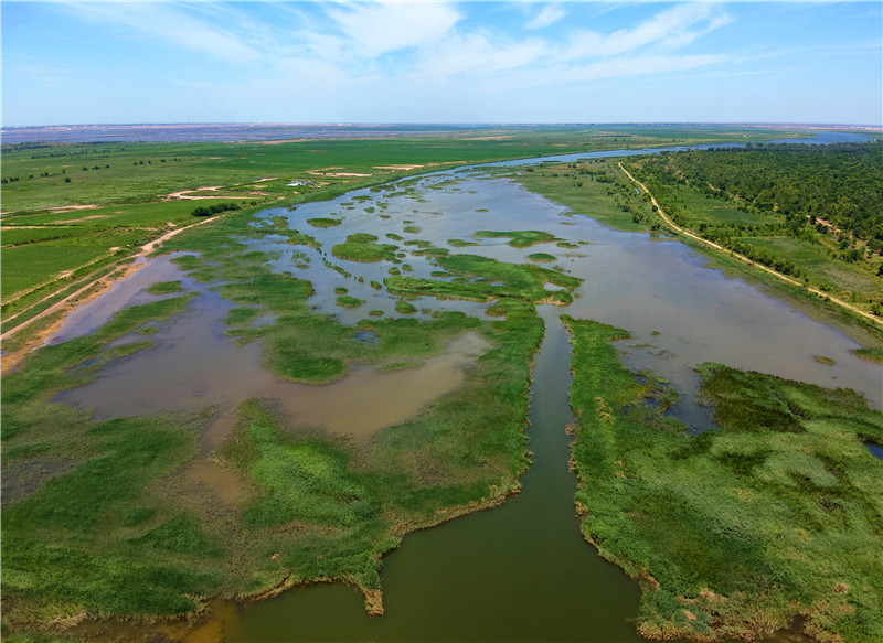 2025年7月,刁口河九分场以下河段生态补水后效果(王成锐 摄)
