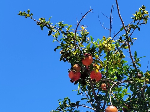 九月,暑气悄然隐退,苏泗庄的天空澄澈如磨亮的蓝宝石,几缕白云轻悠飘过,为清透添了几分温柔。庭院里的风带了凉意,拂过枝叶时卷起细碎沙沙声,将秋的气息悄悄铺展。庭院深处的几颗果树正攒劲孕育秋实:石榴裹着青红相间的外皮,圆鼓鼓透着青涩的饱满,果皮细纹记录着生长的痕迹;青绿的柿子密密缀在枝头,有的带有淡淡绒毛,阳光映出浅浅的光泽,像颗颗绿宝石般鲜活。风起时,枝叶带着满树的 “小期待” 轻轻摇晃,石榴与柿子在光影里轻轻摆动,没有坠落的果实,只有满庭的绿意与生机。